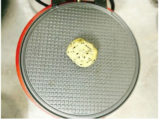 6、平底锅预热以后开大火放入面团烘烤4分钟