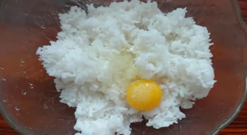 第五步,盛一碗米饭,打入一个鸡蛋,再撒入少许盐,用筷子顺着一个方向搅拌均匀。