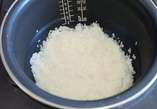 5、盖上锅盖,通电,选普通标准饭程序制作就可以了;直到电饭锅的提示音响起,米饭可以出锅了,打开盖,香味扑鼻而来。
